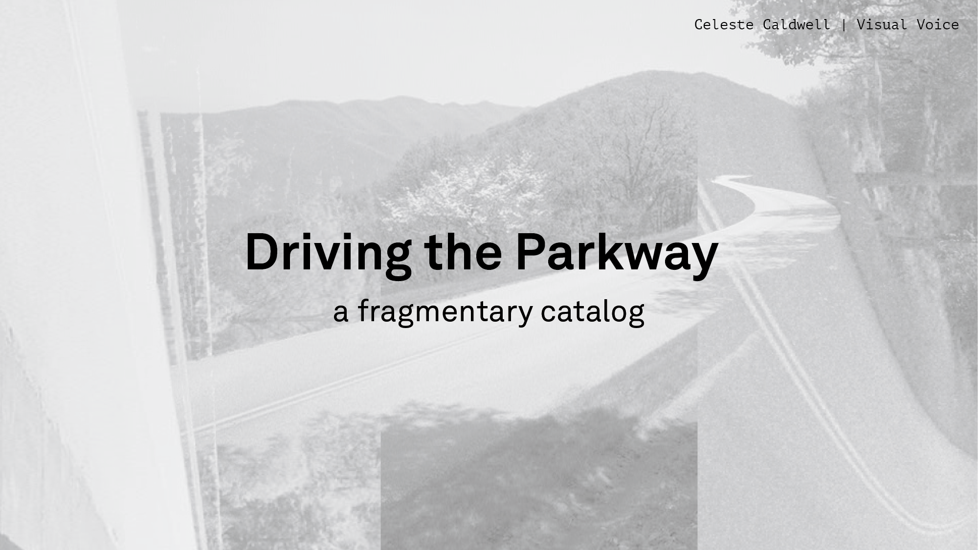 A fragmentary catalog designed to echo sensory-forward memories of driving down the Blue Ridge Parkway.
